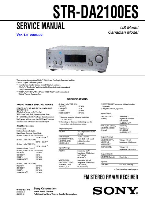 Read Online sony str da2100es service manual Hardcover